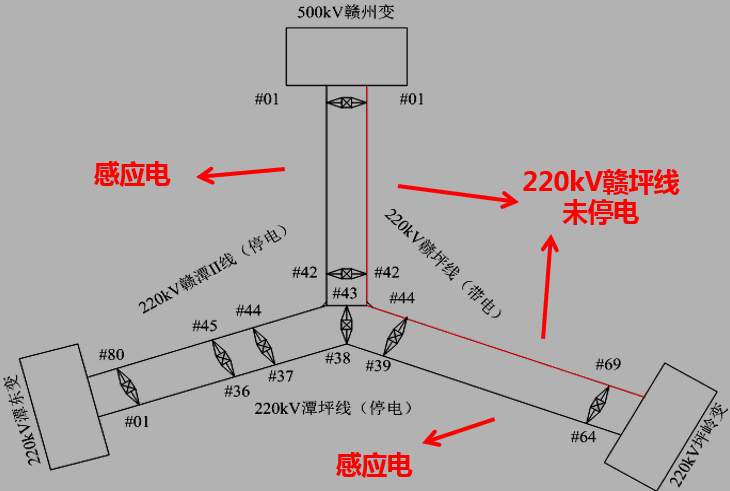 4、作業(yè)前危險點分析不到位:從現(xiàn)場工作票填寫與執(zhí)行情況上看,組織技術(shù)安全措施不全,工作票中缺少本次作業(yè)大的危險點——感應(yīng)電傷人及預(yù)控措施。工作票層層審核把關(guān)不嚴,填寫、簽發(fā)、許可人員均未能起到把關(guān)作用。同時也暴露出,作業(yè)前未熟悉線路接線及運行方式,未考慮需要測試參數(shù)的220kV贛潭II線與帶電220kV贛坪線同塔并架,易產(chǎn)生感應(yīng)電的危險點。