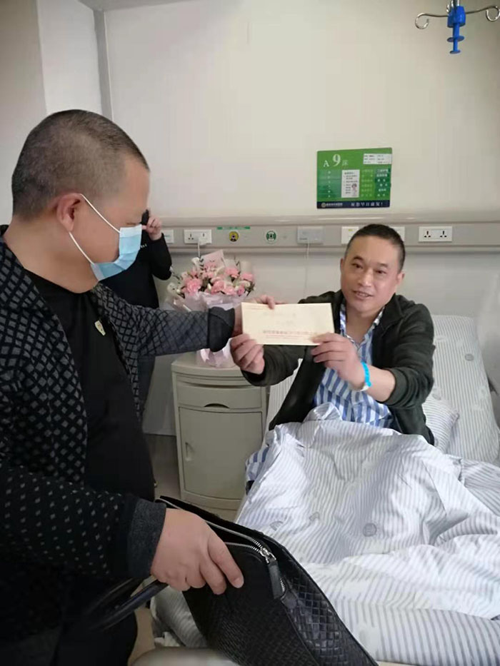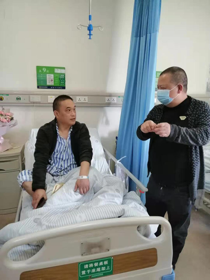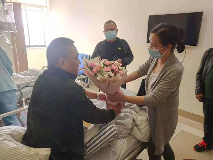 強波電力公司董事長孫波帶領(lǐng)企業(yè)員工看望慰問生病住院員工潘國禮