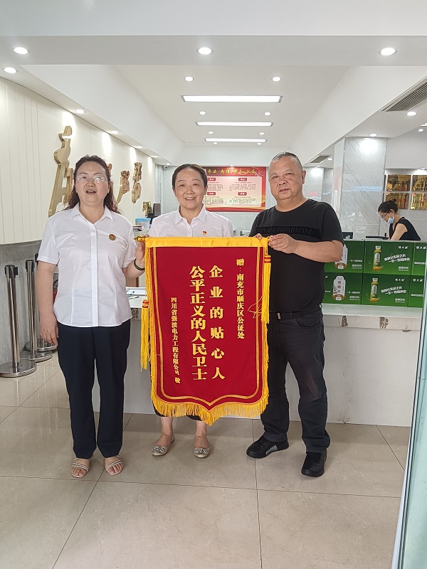 從孫先生的一席話中不難看出公證在法律實(shí)務(wù)運(yùn)用中有相當(dāng)重要的作用,它能預(yù)防糾紛,化解糾紛,為當(dāng)事人帶來財(cái)務(wù)與時(shí)間上的便利,也從側(cè)面反映了順慶公證處堅(jiān)持“崇法、尚信、守正、求真”的理念,不斷追求高水平辦案,高質(zhì)量出證,高熱情服務(wù),不斷加強(qiáng)公證的公信力,深受企業(yè)、群眾信賴。 南充順慶:公證為民暖人心贈(zèng)送錦旗表謝意 “服務(wù)無止境,細(xì)微顯真情”,小小的一面錦旗凝聚著該企業(yè)對(duì)順慶公證處服務(wù)工作的鼓勵(lì)和認(rèn)可,同時(shí)也在炎熱的夏日激發(fā)了全體工作人員的工作熱情。該企業(yè)的案例僅僅是順慶公證處經(jīng)辦的上萬個(gè)公證案例中普通的一個(gè),卻是順慶公證處全心全意為人民服務(wù)的縮影,錦旗背后閃耀著順慶公證處的初心,只有初心不變方能得到始終。 (文/圖 王晨宇)